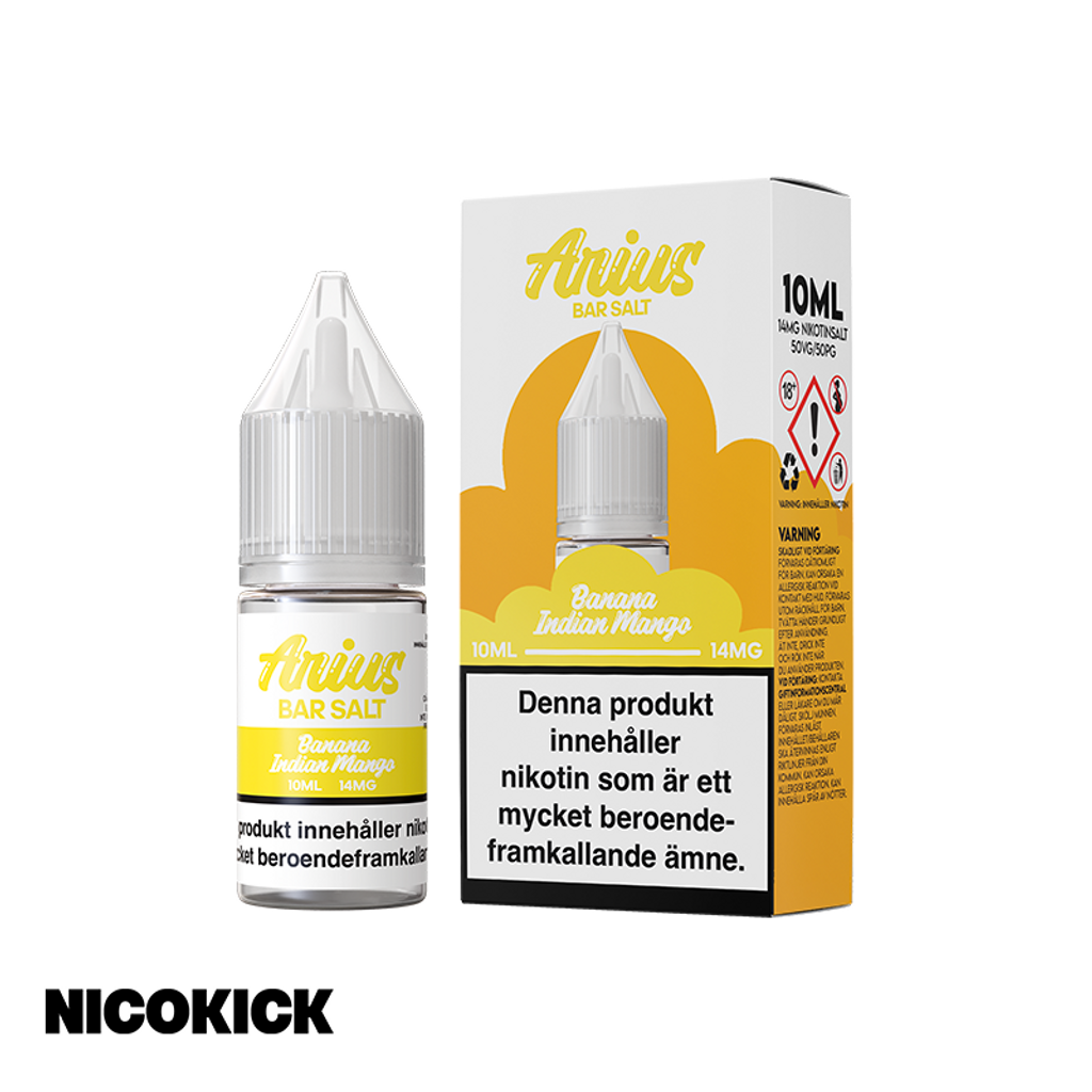 10ml Nic Salt E-juice från Arius med smak av banan och indisk mango.