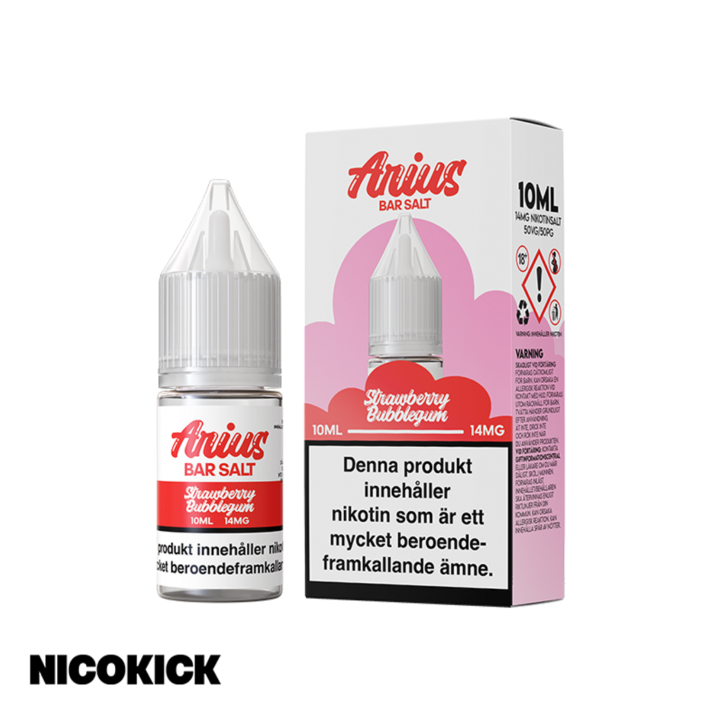 Beskrivning av Arius Bar Salt - Strawberry Bubblegum (10ml E-juice)