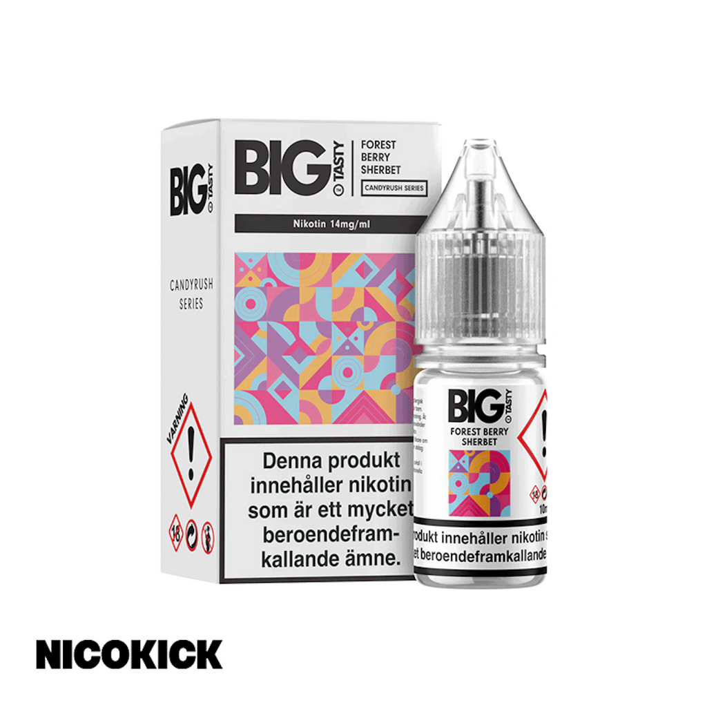 10ml Nic Salt E-juice 14mg från Big Tasty med smak av skogsbär och sorbet glass.