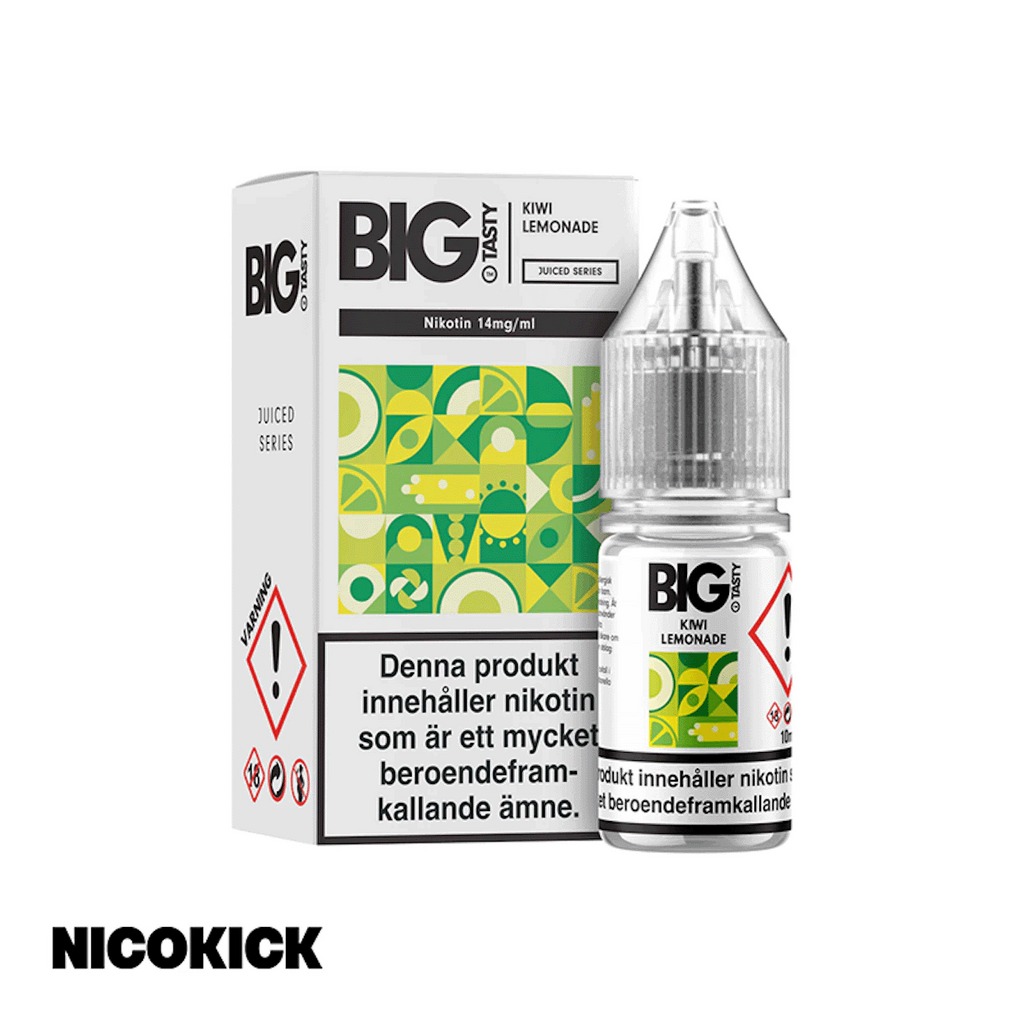 10ml Nic Salt E-juice 14mg från Big Tasty med smak av kiwi och lemonad.