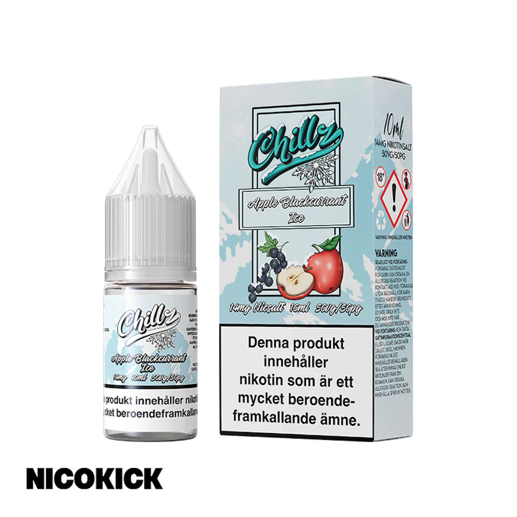 10ml Nic Salt E-juice 14mg från Chillz med smak av svartvinbär, äpple och cooling.