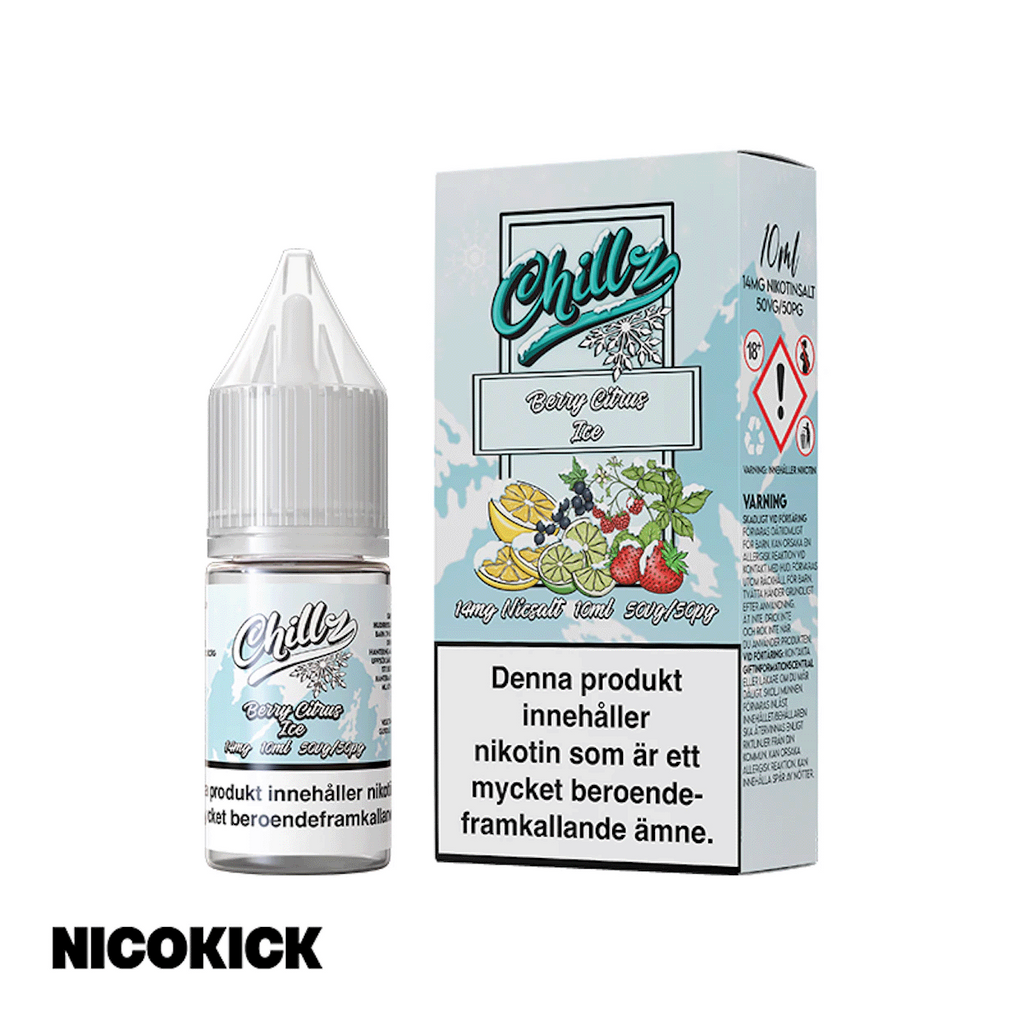 10ml Nic Salt E-juice 14mg från Chillz med smak av blandade bär, citrusfrukter och cooling.