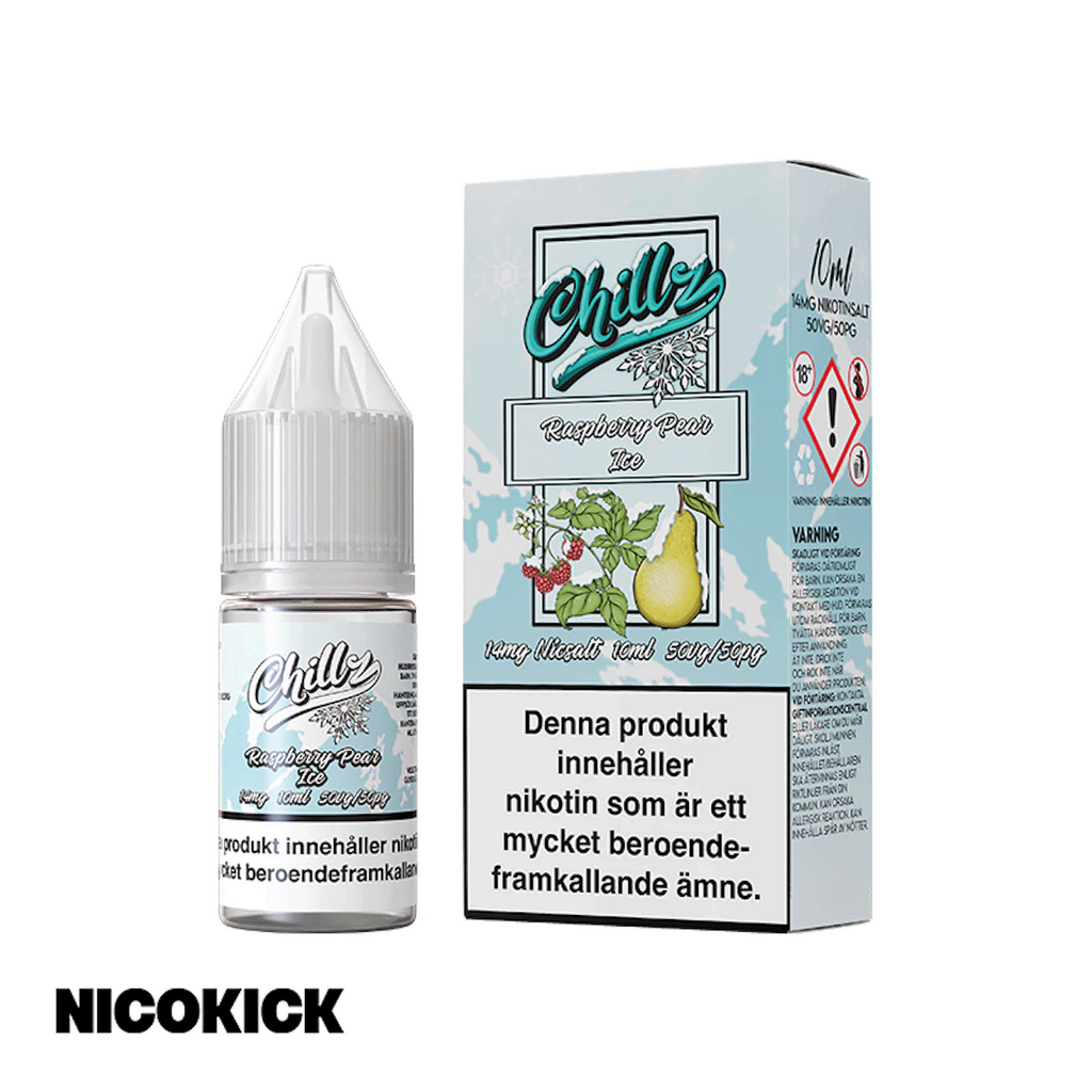 10ml Nic Salt E-juice 14mg från Chillz med smak av hallon, päron och cooling.