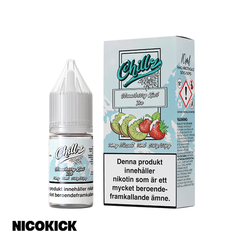 10ml Nic Salt E-juice 14mg från Chillz med smak av jordgubb, kiwi och cooling.