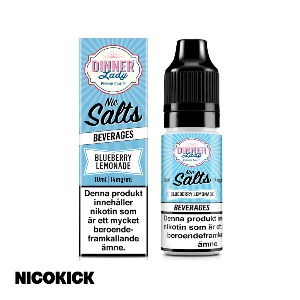 10ml E-juice med 14mg Nicsalt från Dinner Lady med smak av blåbär och lemonad.
