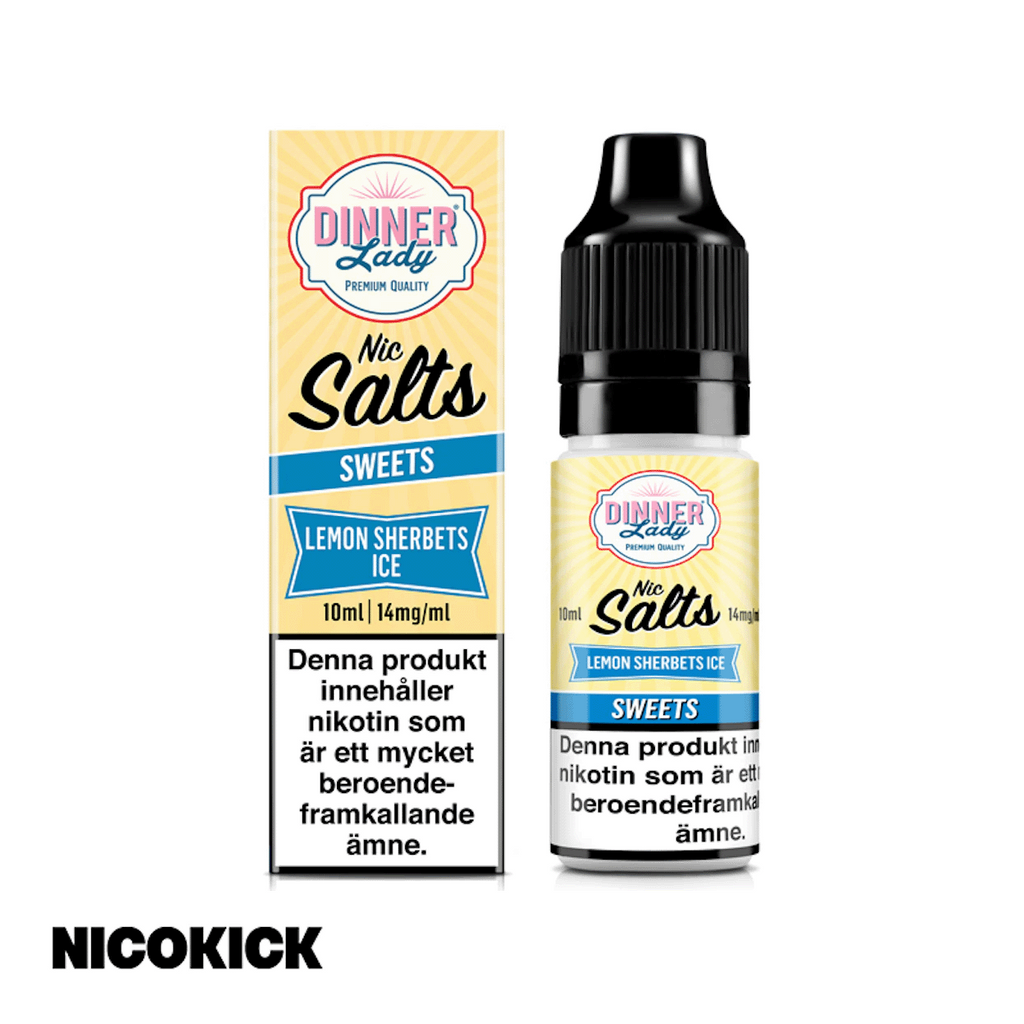10ml E-juice med 14mg Nicsalt från Dinner Lady med smak av citrongodis och cooling.