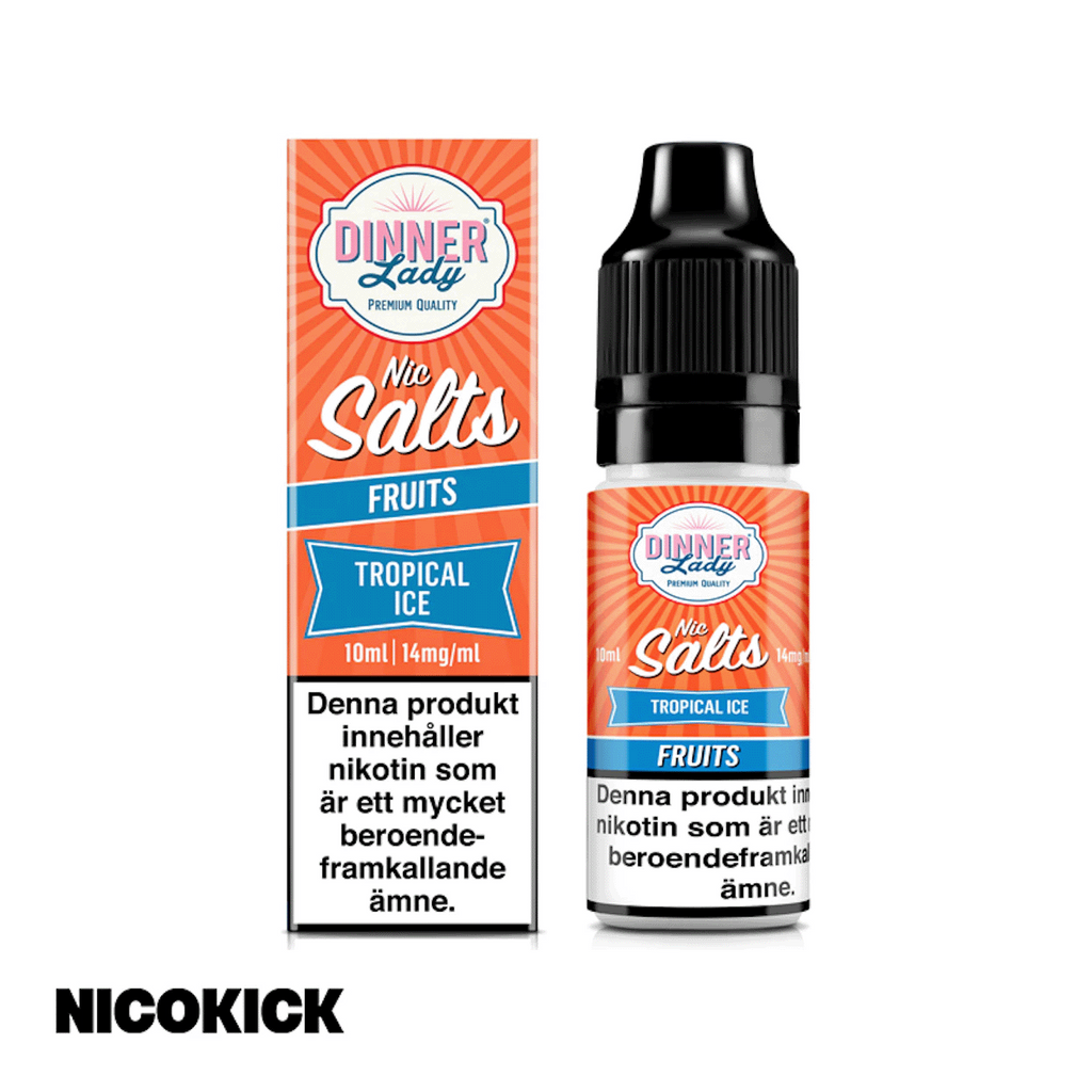 10ml E-juice med 14mg Nicsalt från Dinner Lady med smak av tropiska frukter och cooling.