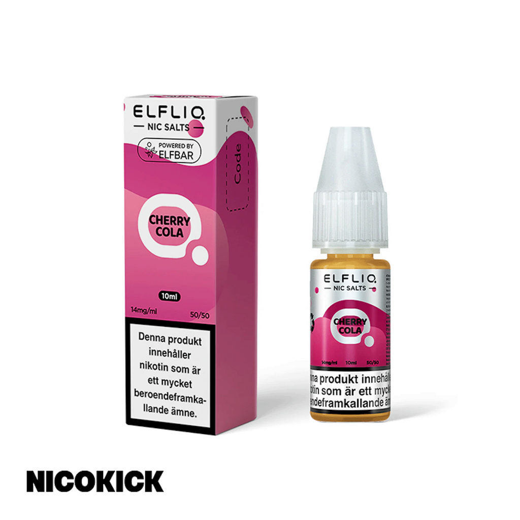 10ml E-juice med 14mg Nicsalt från ElfLiq med smak av körsbär och cola.