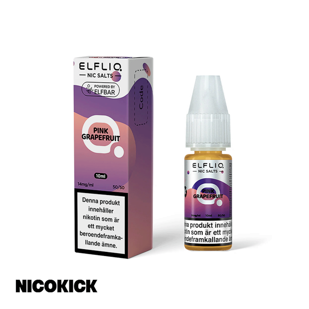 10ml E-juice med 14mg Nicsalt från ElfLiq med smak av rosa grapefrukt.