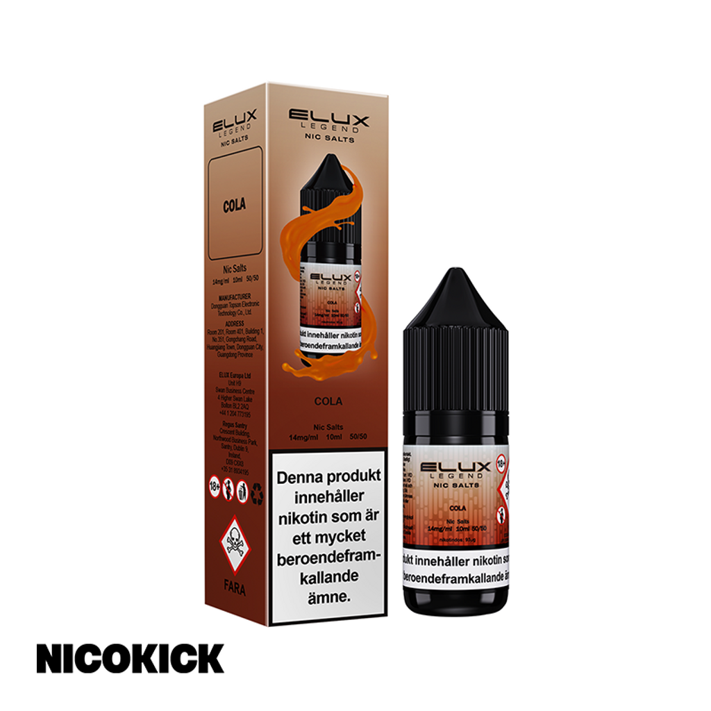 10ml E-juice med 14mg Nicsalt från Elux Legend med smak av cola (läsk).
