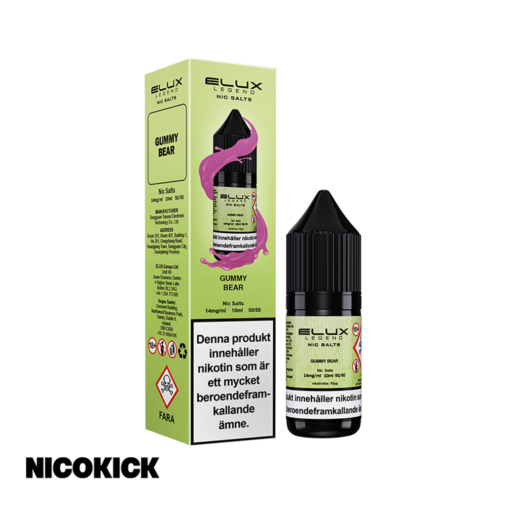 10ml E-juice med 14mg Nicsalt från Elux Legend med smak av godisbjörnar.