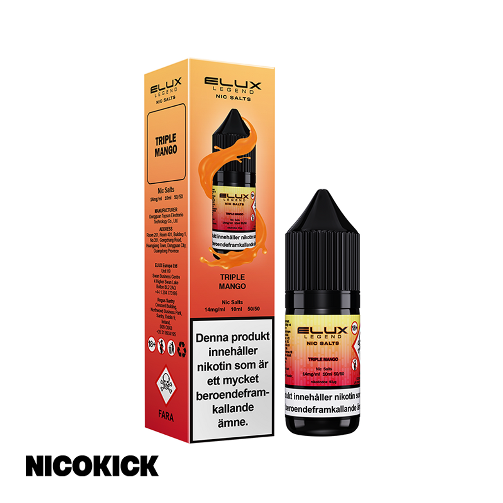 10ml E-juice med 14mg Nicsalt från Elux Legend med smak av mango, mango och mango.