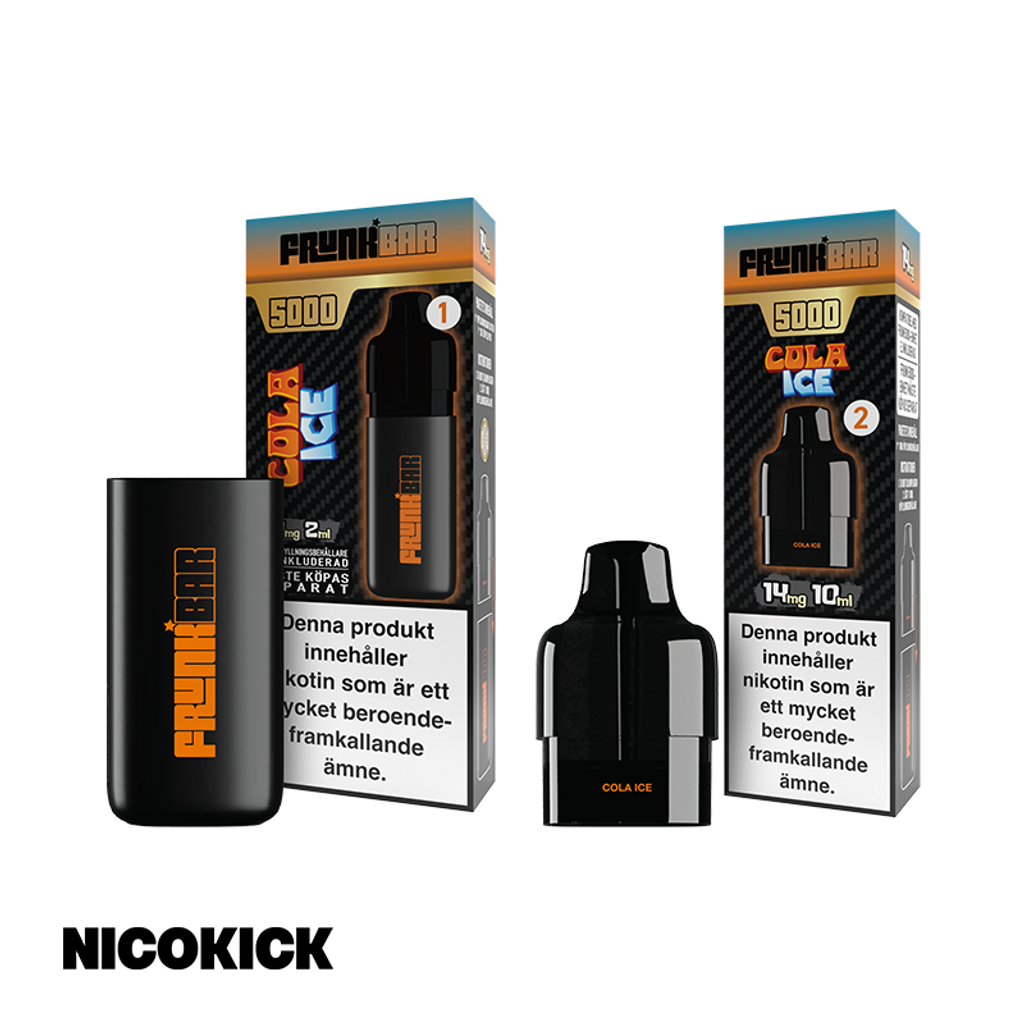 Frunk 5000 Engångsvape 14mg med smak av cola (läsk) och cooling.