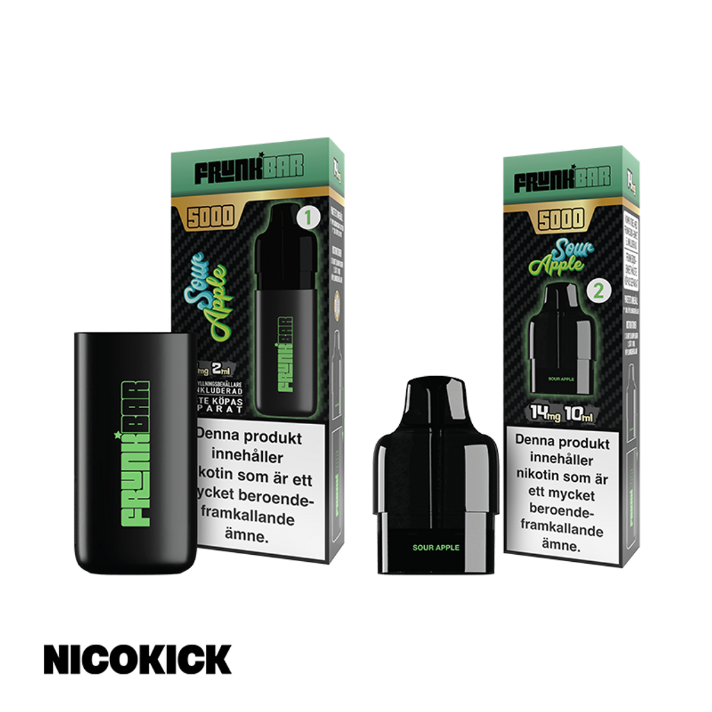 Frunk 5000 Engångsvape 14mg med smak av sura äpplen.