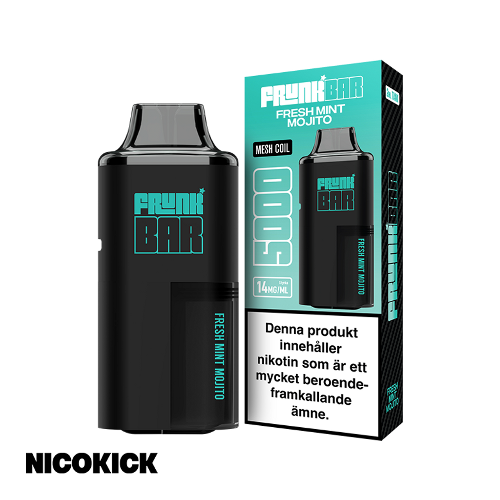 Frunk 5000 Engångsvape 14mg med smak av mint och mojito.