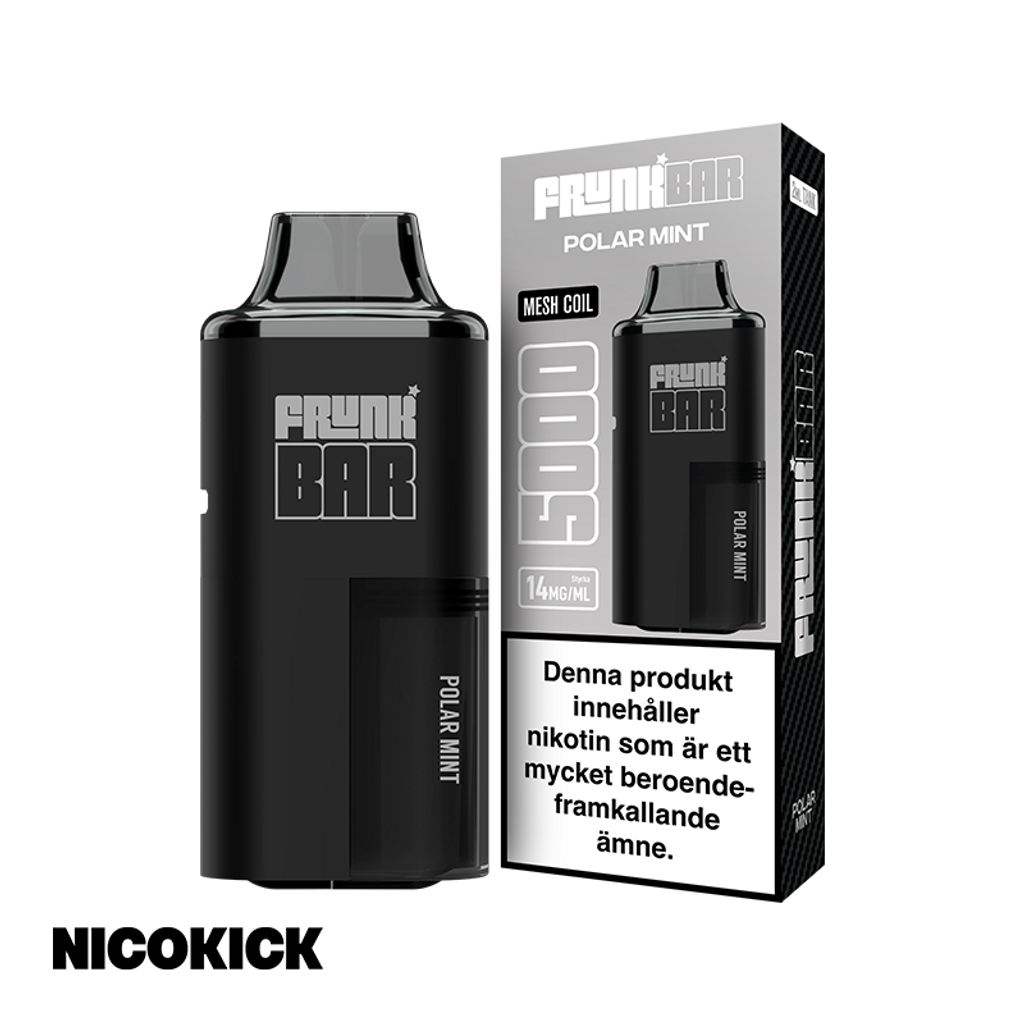 Frunk 5000 Engångsvape 14mg med smak av mint.