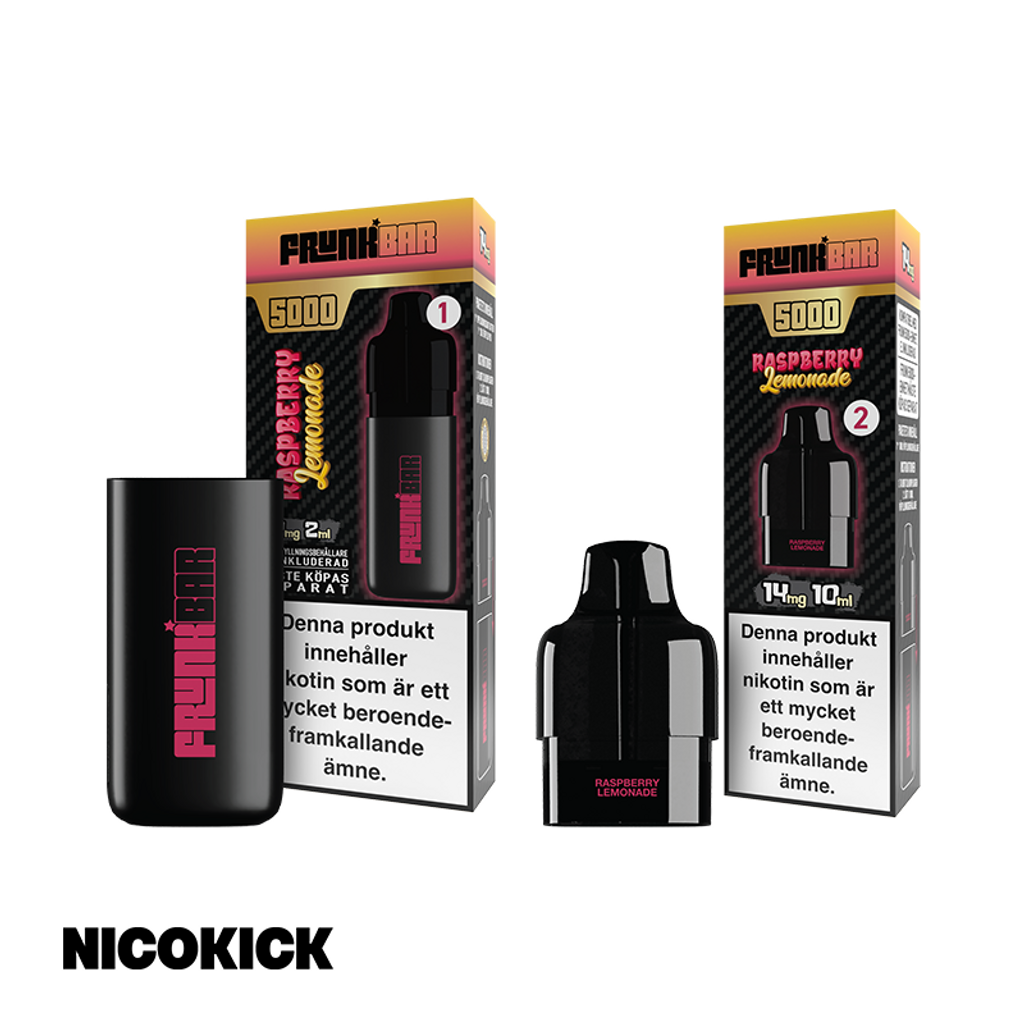 Frunk 5000 Engångsvape 14mg med smak av hallon och lemonad.
