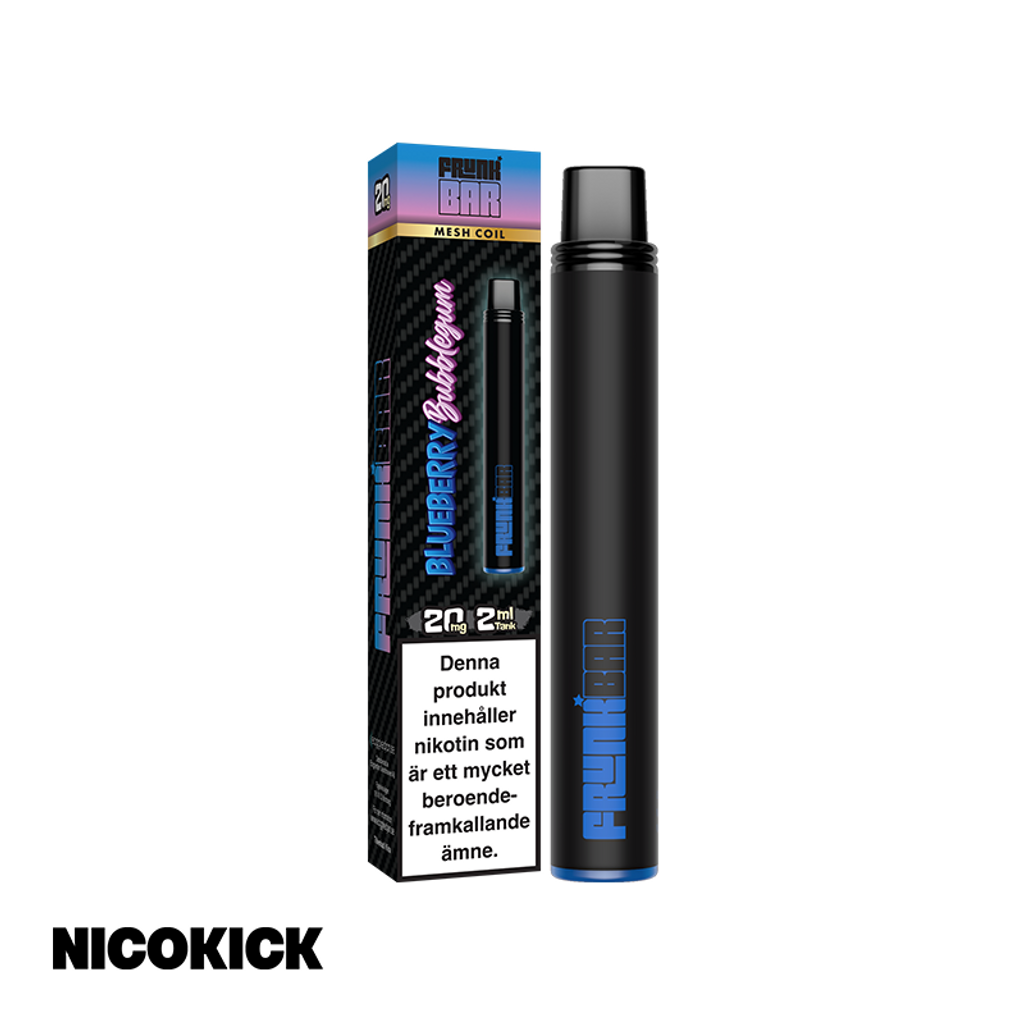 Frunk Bar Engångsvape 20mg med smak av blåbär och tuggummi.