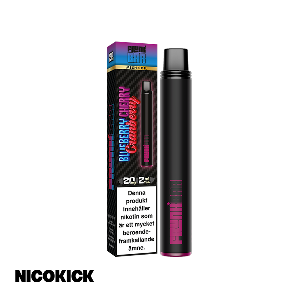 Frunk Bar Engångsvape 20mg med smak av blåbär, körsbär och tranbär.