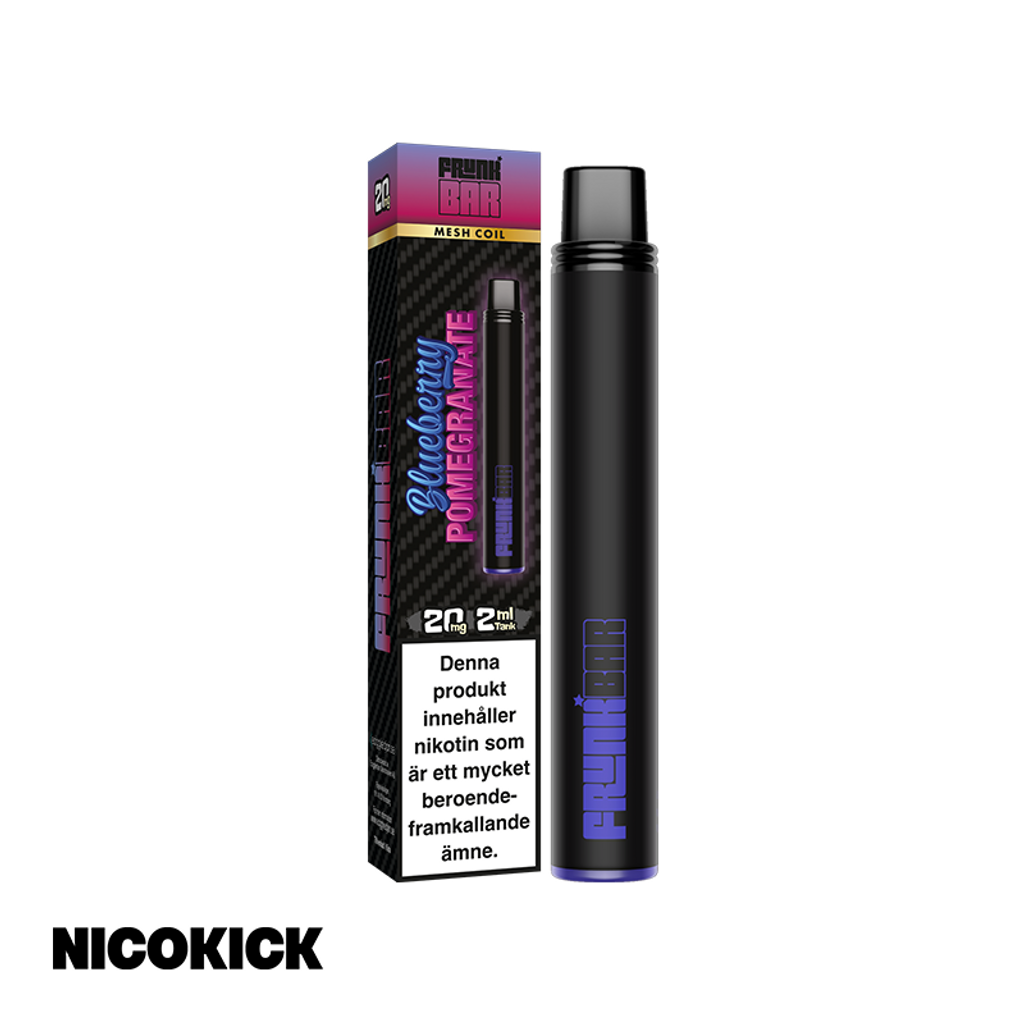 Frunk Bar Engångsvape 20mg med smak av blåbär och granatäpple.