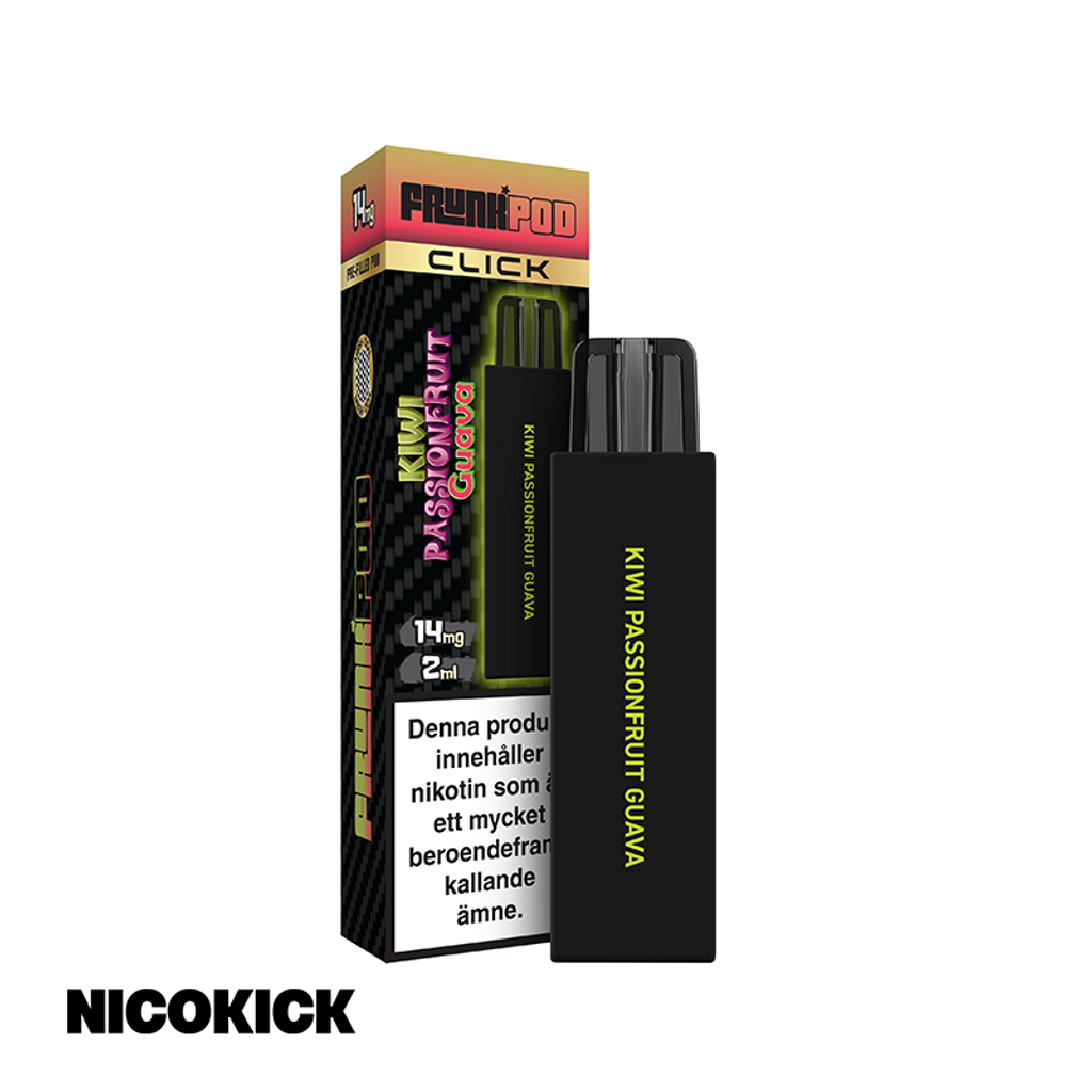 Förfylld Frunk Click Mesh Pod med smak av kiwi, passionsfrukt och guava, 14mg nikotin.
