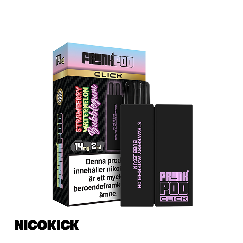 Podsystem med 1st 400mAh batteri och 1st förfylld Frunk Click Pod med smak av jordgubbar, vattenmelon och tuggummi, 14mg nikotin.
