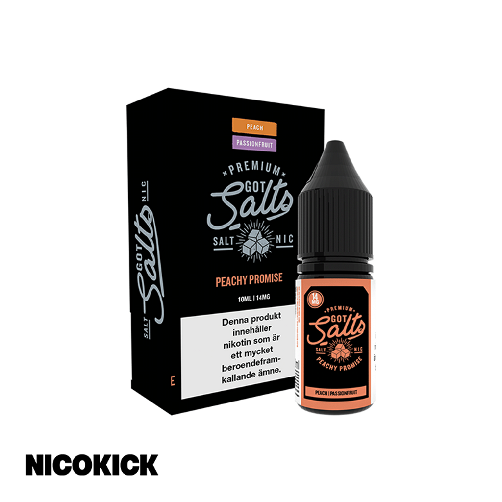 10ml Nic Salt E-juice 14mg från Got Salts med smak av persika och passionsfrukt.