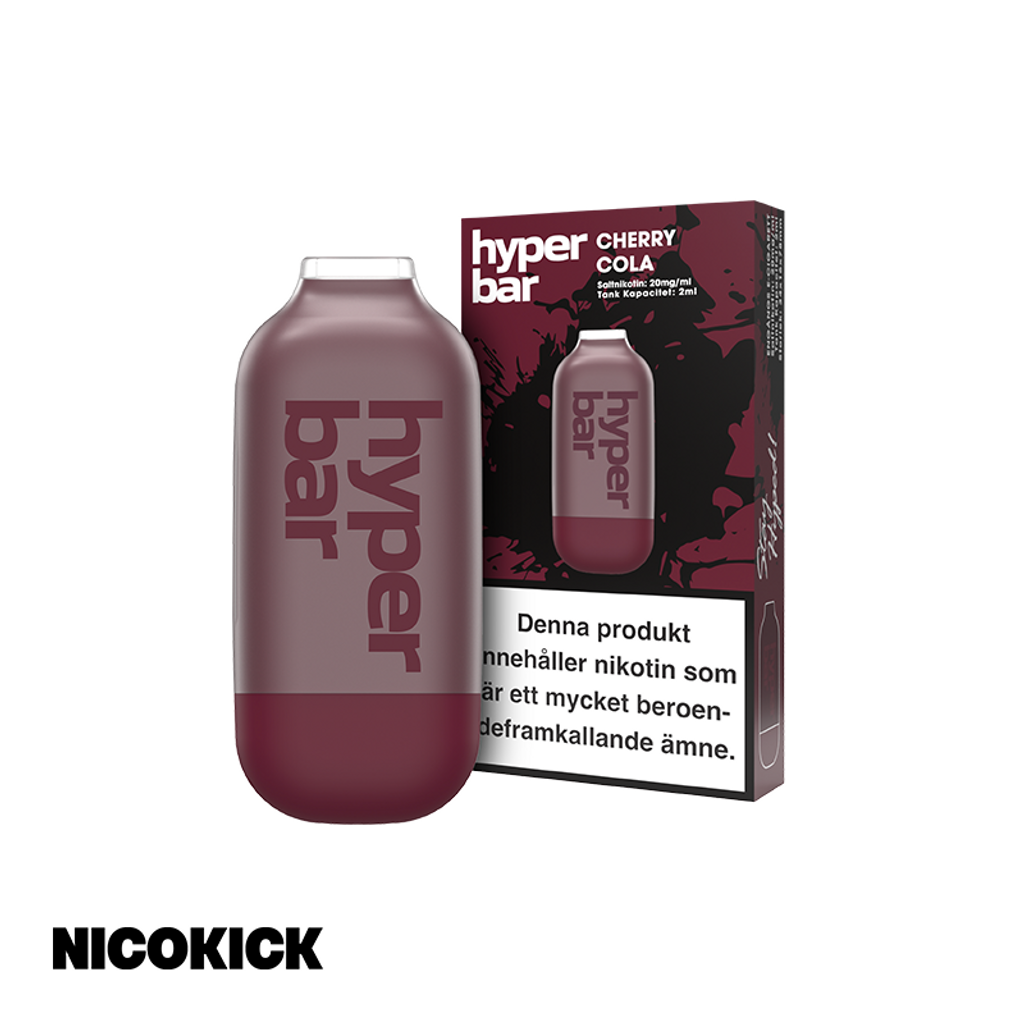 Hyper Bar Engångsvape 20mg med smak av körsbär och cola.