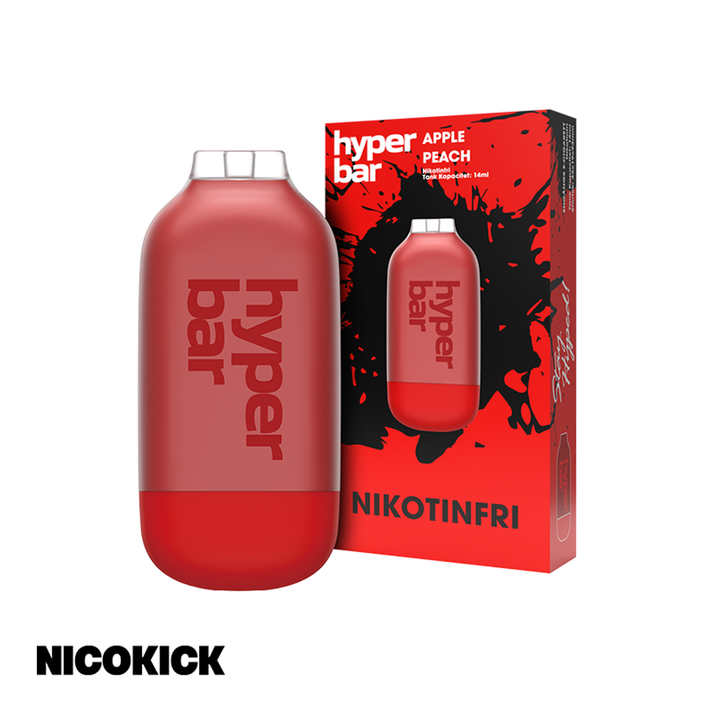 Nikotinfri Hyper Bar ZERO Engångsvape med smak av äpple och persika.