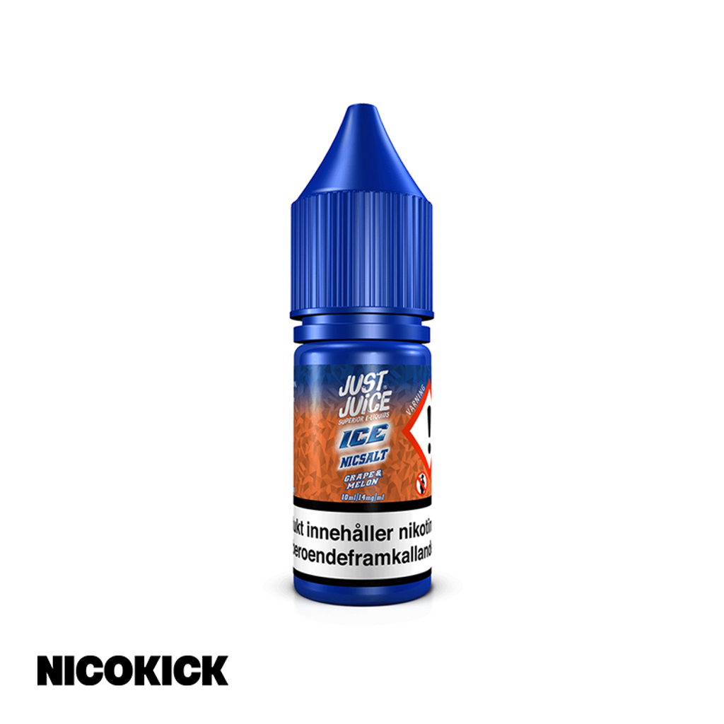 10ml E-juice med 14mg Nicsalt från Just Juice Ice med smak av vindruvor, melon och cooling.
