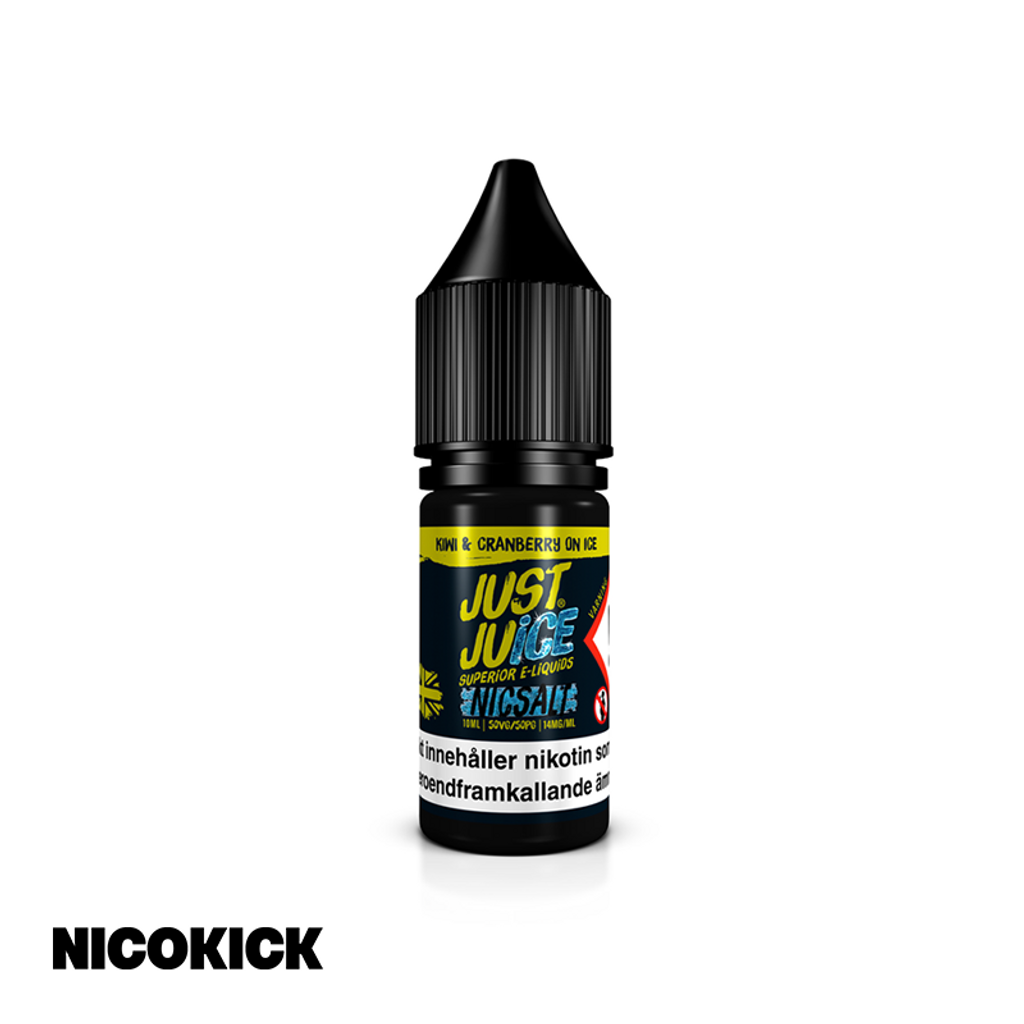 10ml E-juice med 14mg Nicsalt från Just Juice med smak av kiwi, tranbär och cooling.