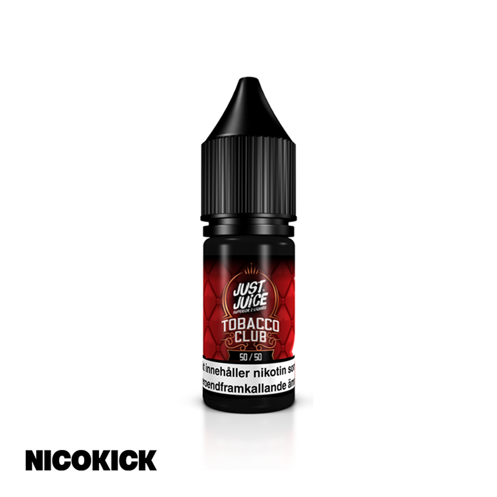 10ml E-juice med 14mg Nicsalt från Just Juice Tobacco Club med smak av tobak, karamell och nötter.