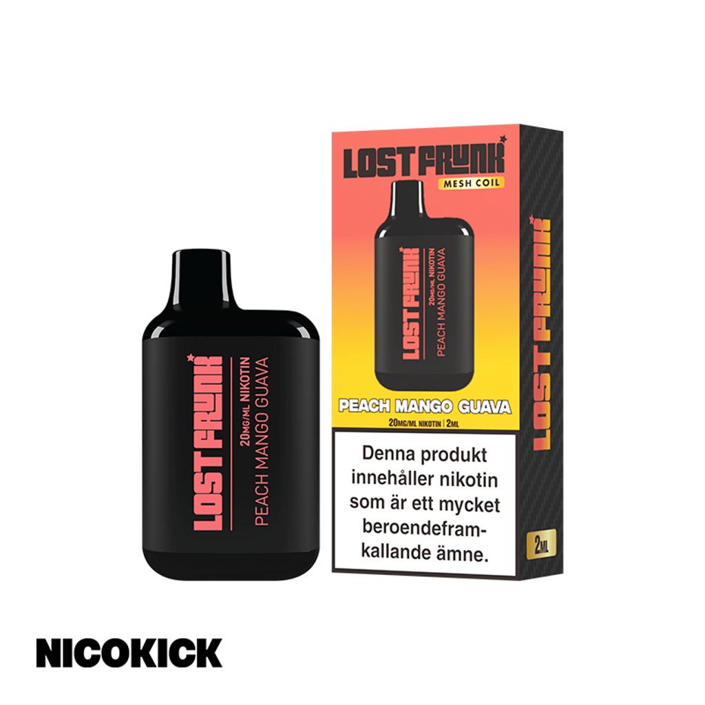 Lost Frunk Engångsvape 20mg med smak av persika, mango och guava.