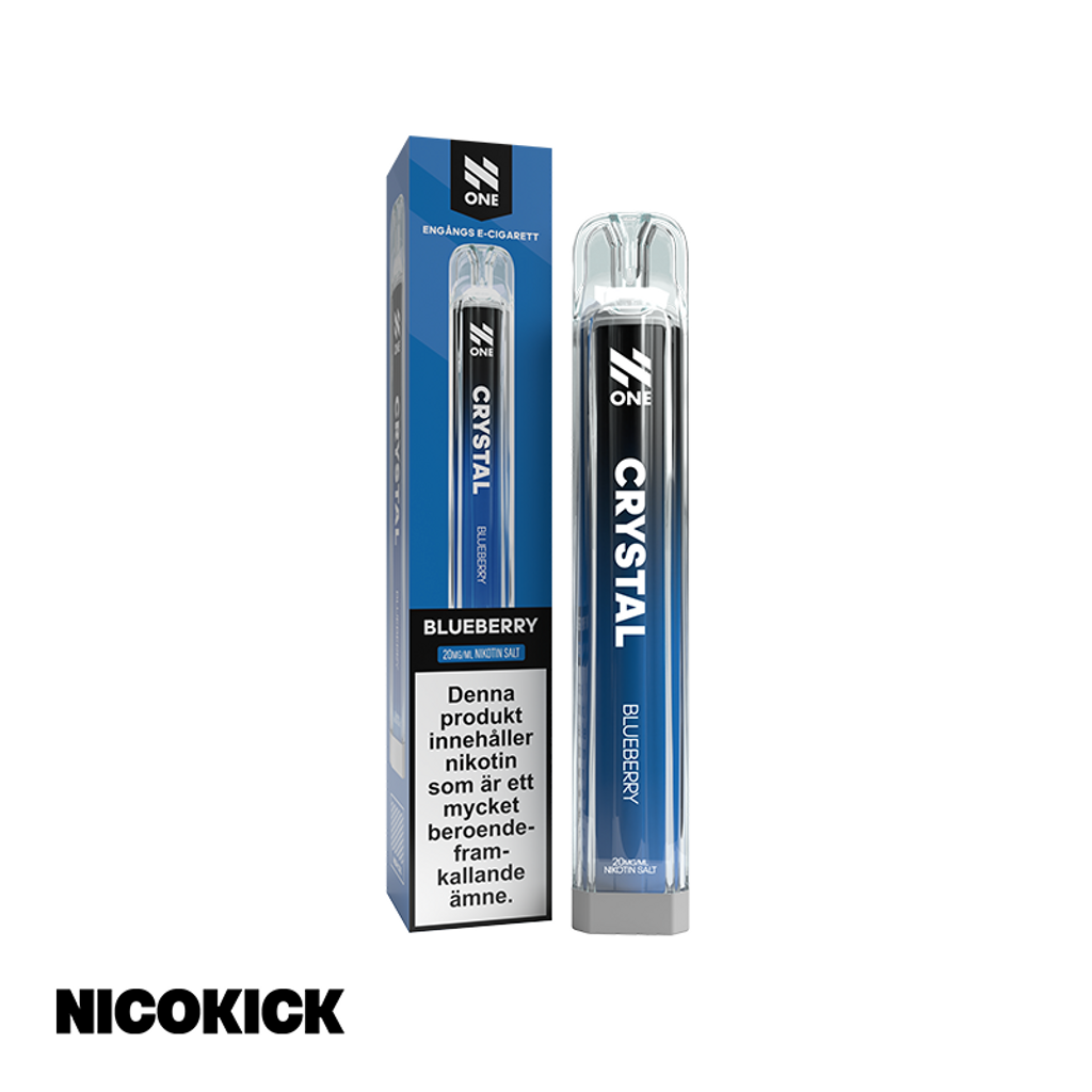N One Crystal Engångsvape 20mg med smak av blåbär.