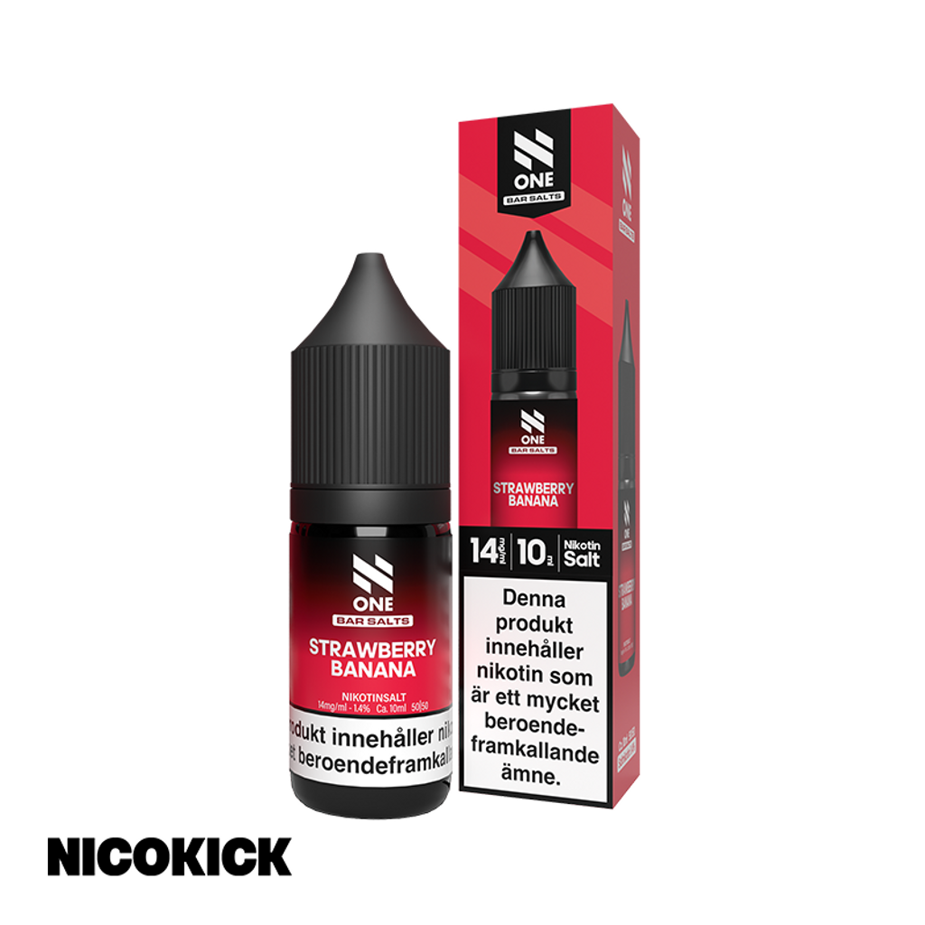 10ml Nic Salt E-juice 14mg från N One med smak av jordgubb och banan.
