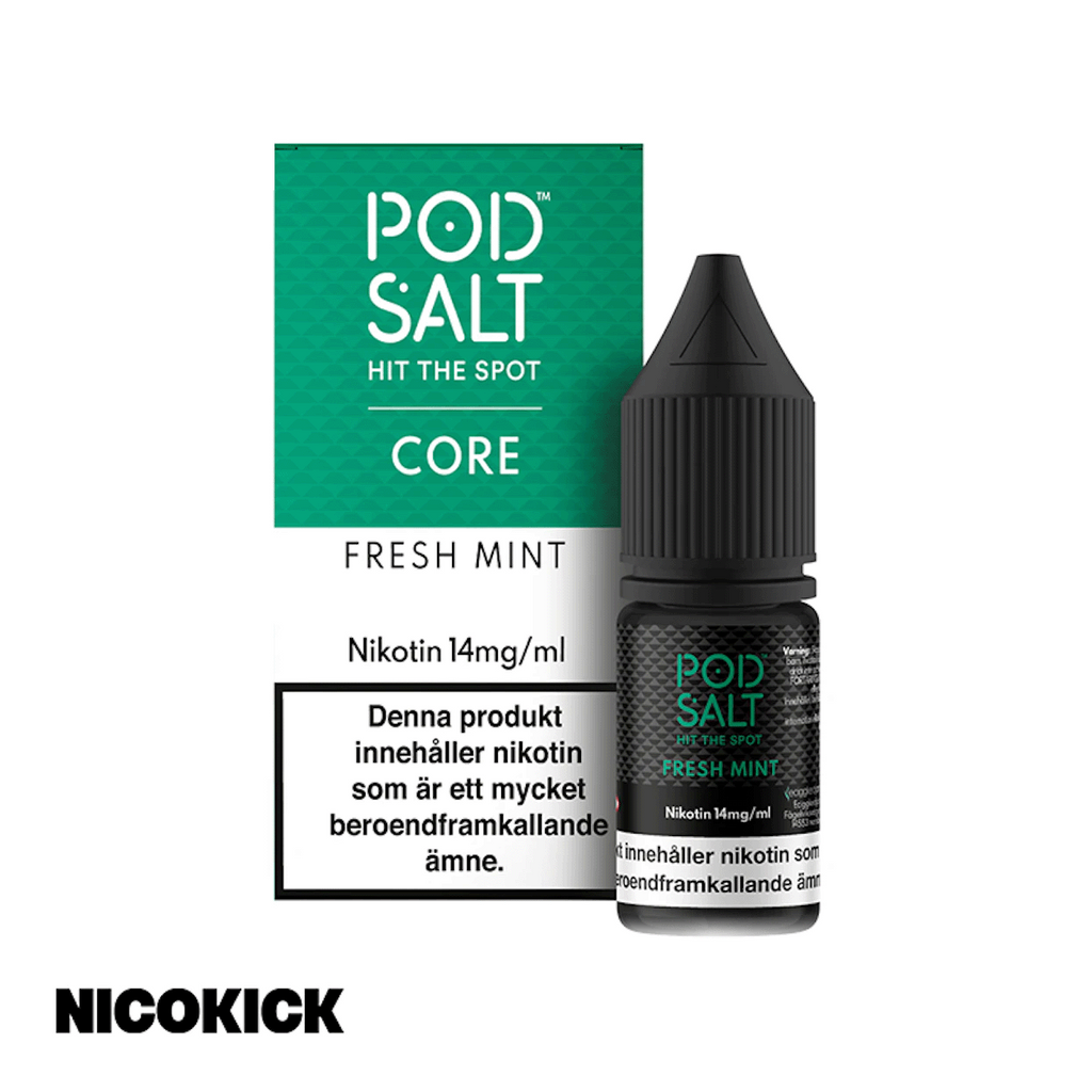 10ml E-juice med 14mg Nicsalt från Pod Salt, med smak av mint.