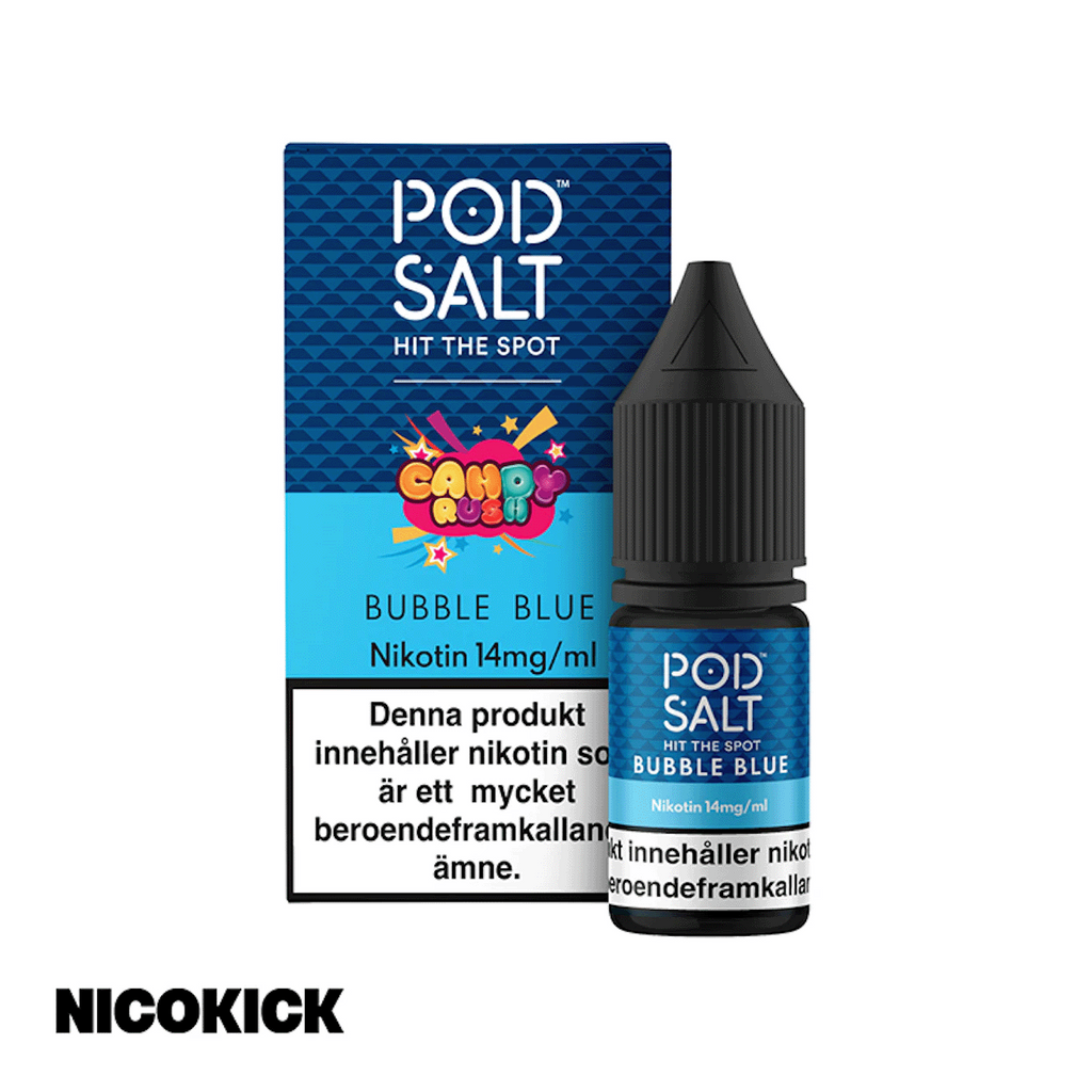 10ml E-juice med 14mg Nicsalt från Pod Salt med smak av blått tuggummi.