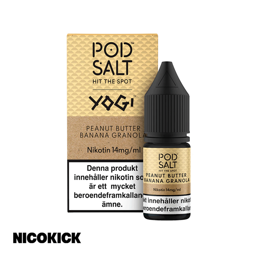 10ml E-juice med 14mg Nicsalt från Pod Salt med smak av jordnötssmör, banan och granola.