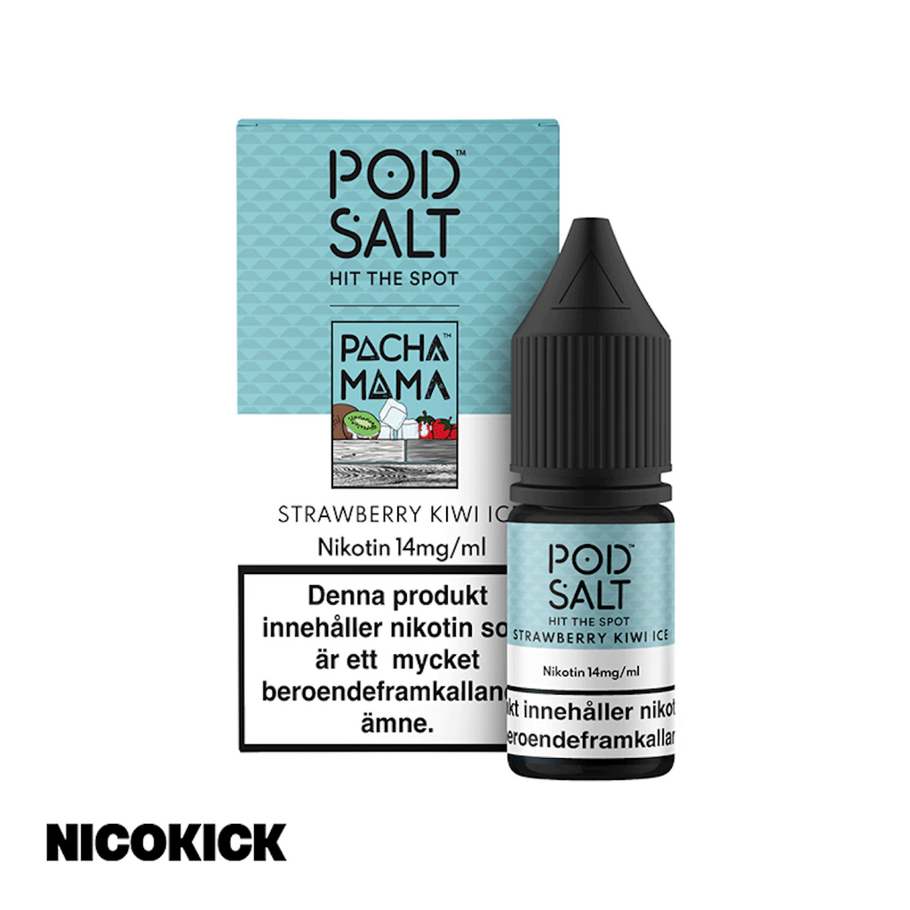 10ml E-juice med 14mg Nicsalt från Pod Salt med smak av jordgubb, kiwi och cooling.