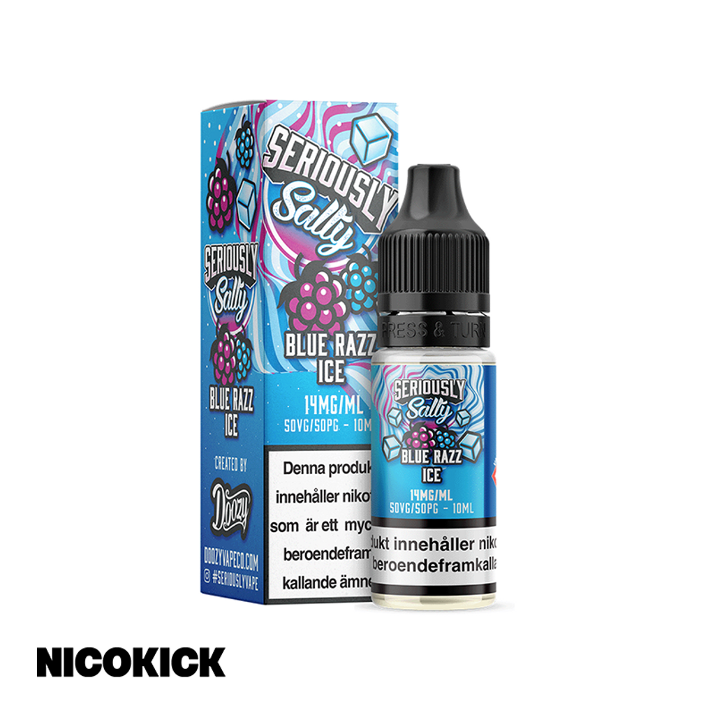 10ml E-juice med 14mg Nicsalt från Seriously med smak av blå hallon och cooling.