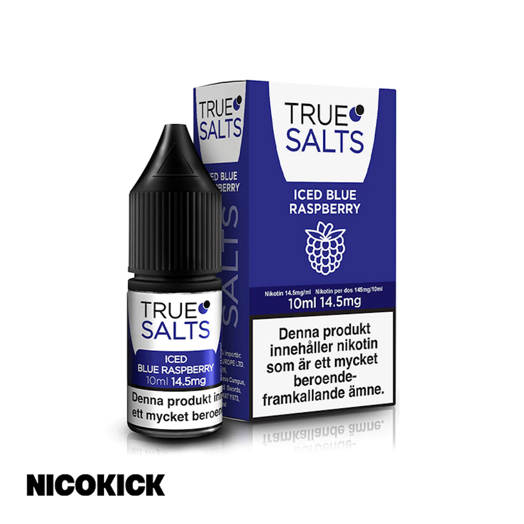 10ml E-juice med 14.5mg Nicsalt från True Salts med smak av blå hallon och cooling.