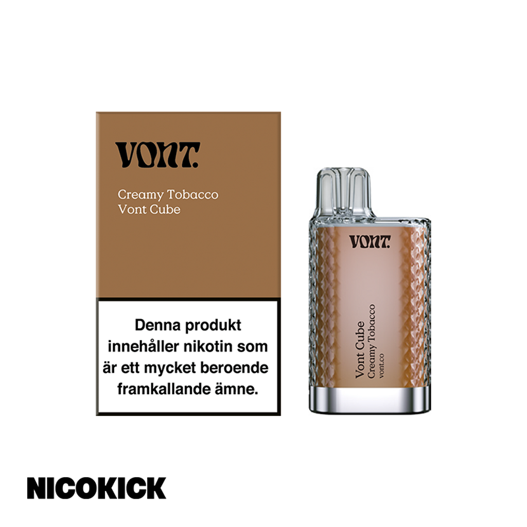 Beskrivning av Vont Cube Engångs Vape - Creamy Tobacco