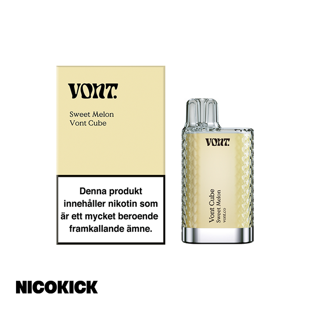 Vont Cube Engångsvape 20mg med smak av söt och mogen melon.
