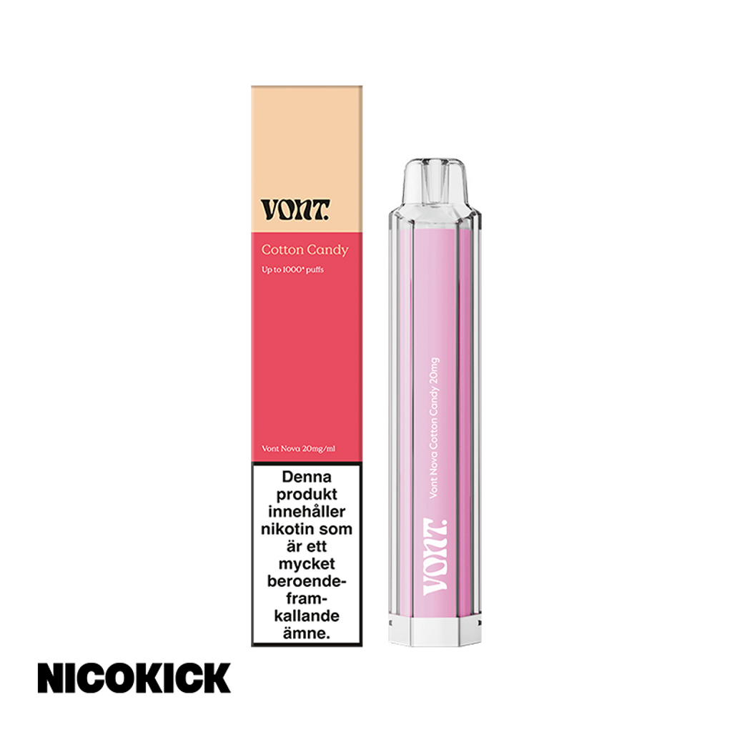 Vont Nova Engångsvape 20mg med smak av söt sockervadd med en hint av bär.
